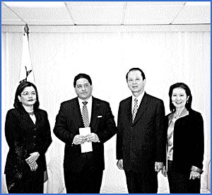 Recientemente, su Excelencia David C. Y. Hu, Embajador de la República de China en Panamá, (Taiwan) hizo entrega de una donación de ciento cincuenta mil balboas a la Licenciada Magali Castillo, de la Alianza Ciudadana Pro- Justicia, quien utilizará los fondos a beneficios del Órgano Judicial.