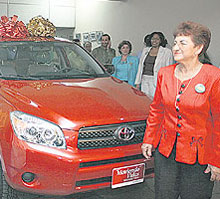 El primer carro se va hacia Calle Arriba de Los Pozos, Herrera. Hercilia es la poseedora de un confortable Toyota Rav 4. Con toda emoción narró que fue su hija Amelia Crespo de Ureña, billetera desde hace 15 años, le regaló un pedacito del billete. Ella, Amelia, también se ganó unos B/2,000.