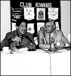 En reunión plenaria del Club Kiwanis de Panamá se presentó ante su pleno el Ing. Joseph Homsany, Presidente del Patronato Nacional de Nutrición, el tema "Las granjas de producción sostenible". Presentes en la mesa principal, están la Ing. Yariela Gallegos, del Patronato; los representantes del Club, Sr. José Jaén Jr., Presidente, y el Ing. Juan Flors, Primer Vicepresidente.