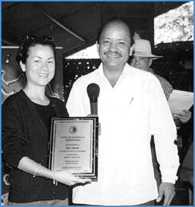El Instituto Panameño de Turismo, Regional de Veraguas, fue reconocido como "Mejor cubículo de exposición" durante la XVII Feria de Santa Fe. En la foto, la Licda. Viodelda Aracelly Chang, representante del IPAT, recibe la placa de reconocimiento de manos del Sr. Julio Casas, gerente del BDA en esa provincia. ¡Enhorabuena!
