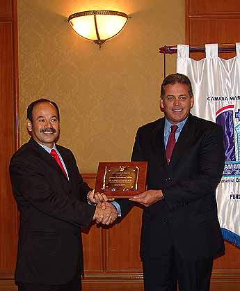 El segundo vicepresidente de la República y administrador de la Autoridad Marítima de Panamá (AMP), Rubén Arosemena Valdés, recibió un reconocimiento de manos del presidente de la Cámara Marítima de Panamá, Rommel Troetschpor, la gestión que lleva adelante, caracterizada por la participación de los diversos sectores ligados a la industria marítima con el objetivo de trazar estrategias y ejecutar proyectos que generen nuevas plazas de empleo e impulsen la economía del país.