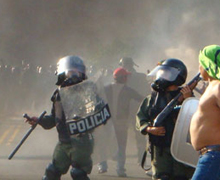 Los uniformados lanzaban lacrimógenas y perdigones, mientras los indígenas respondían con una cantidad de piedras que mantenían en la calle desde antes del enfrentamiento.