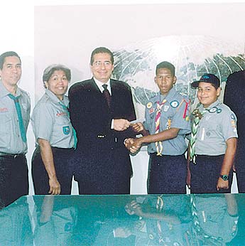 La Asociación de Scouts de Panamá ha podido emprender nuevos proyectos con miras a la formación de Grupos Scouts en diferentes escuelas a nivel nacional. Un total de 500 niños y adolescentes se unieron a este movimiento que educa y fortalece los valores del trabajo, responsabilidad, compañerismo y lealtad. En la foto observamos en el orden acostumbrado a: José Pinilla y Lidia Rodríguez del Consejo Nacional de Scouts, Lic. Ramón Fonseca, socio de la Firma Mossack Fonseca y Co., Michael Díaz y Jorge González de la Asoc. Scouts, Lic. Jurgen Mossack y Lic. Chris Zollinger, socios de la Firma Mossack Fonseca y Co. y al Sr. José L. Echeverri, Director de Desarrollo Institucional y Mercadeo de la Asoc. Scouts.