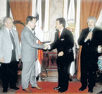 Diputados de la Duma Estatal de la Federación de Rusia, acompañados por su embajador en Panamá, Evgeny Voronin, visitaron al alcalde Juan Carlos Navarro, y recibieron pergaminos que los distinguen como visitantes ilustres de Panamá.