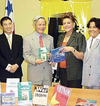 Más de cien libros, revistas, discos y videos digitales donó el embajador de Vietnam, Quoc BE Tran a la Biblioteca Nacional Ernesto J. Castillero. El diplomático, estuvo acompañado por el Agregado Cultural Tuan Anh Do y fueron recibidos por Rosa María Britton.