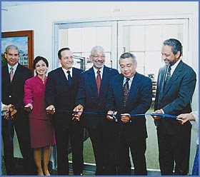 Las nuevas instalaciones del Centro de Recursos Técnicos, de la Autoridad del Canal de Panamá fueron inauguradas por el Dr. Jorge Eduardo Ritter, ex canciller de la República. Entre su acompañantes están el historiador Luis Navas,el administrador Alemán Zubieta; Gisela Lammerts Van Bueren, Rolando Cochez; la directora de Recursos Humanos, Ana María de Chiquilani; el subadministrador Vásquez .