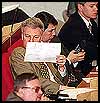 mientras golpeaba el podio con un puño.