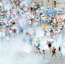 Cerca de 400 unidades de la Policía procedieron a reprimir la manifestación con bombas lacrimógenas y balas de goma. Al momento de los enfrentamientos la concentración no era encabezada por su...