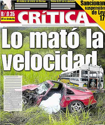 El exceso de velocidad en la vía de acceso hacia Veracruz hizo que a eso de las 5: 40 a.m. Davis se saliera de su paño, se estrellara contra el bus cargado de pasajeros y se fuera a una cuneta, frente al rancho Carimar, al frente de la playa del corregimiento.