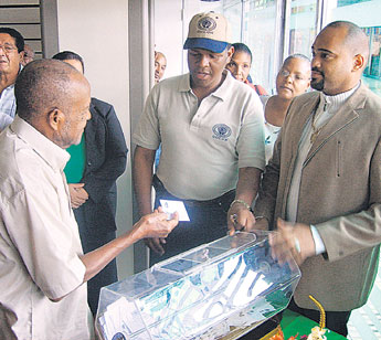 El día 6 de junio de 2008, se celebró la Tómbola del Vehículo Suzuki Alto del año. El Sr. Egbert Davis, asociado, sacó el boleto ganador en presencia de los testigos Gustavo Pérez, gerente de la COOPACC, R.L., y el Sr. Gilberto Russell, presidente de la Junta de Vigilancia. A la izquierda, al fondo se encuentra el Sr. Pascual Fiengo, presidente de la Junta Directiva COOPACC, R.L.