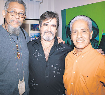 En Galería Huellas, se llevó a cabo una exposición colectiva en la que participó el maestro Manuel Montilla con una serie de esculturas. En la foto Manuel Montilla, José María Olivella y Aguilar Ponce.