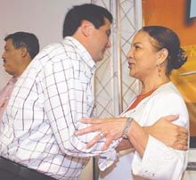 Martín saluda a Olivia de Pomares durante la reunión. ... |