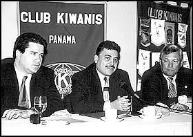 El Fiscal de Drogas, Licdo. Rosendo Miranda, dictó recientemente en reunión plenaria del Club Kiwanis de Panamá una conferencia sobre diversos aspectos del narcotráfico. En la foto en el orden acostumbrado, Licdo. Luis Guinard, el fiscal Miranda, y el Sr. José Jaén Jr., presidente de la Asociación. ¡Enhorabuena!