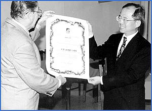 El Instituto Nacional de Formación Profesional (INAFORP) entregó un pergamino de reconocimiento al consejero económico de la Oficina Comercial de la Embajada de China-Taiwan, Jaime Chen, quien luego de laborar por 5 años en Panamá regresa a su país para cumplir nuevas funciones. En la gráfica, Anel Rodríguez Romero, director nacional del INAFORP, entrega el pergamino al Licdo. Chen.