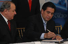 La Casa Amarilla -donde se desarrolló el acto- estaba de bote en bote, incluida la participación de opositores, para observar a Torrijos estampar su firma conjuntamente con el ministro para Asuntos del Canal, Ricaurte Vásquez. El testigo de honor fue el primer ministro de San Vicente y las Granadinas, Ralph Gon�alves quien llegó el fin de semana a Panamá.