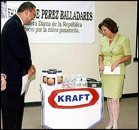 Una donación por 21 mil 500 dólares, en artículos, entregó la Corporación Phillip Morris para el Pacto por la Niñez Panameña, la cual fue recibida por la Primera Dama de la República, Dora Boyd de Pérez Balladares, Presidente Honoraria del Pacto. La donación fue entregada por el Sr. Roberto Mendoza, Gerente General de la empresa, y por el Ejecutivo Rodrigo Barsallo, en presencia de la Licda. Miriam de Calderón, en representación de la Junta de Juegos. ¡Enhorabuena!
