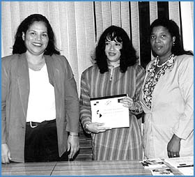 Adelina de Domingo, Coordinadora de organizaciones no gubernamentales para el desarrollo integral de la mujer y Margarita Muñoz, representante de Foro, Mujer y Desarrollo, recientemente entregaron a la Licda. Raisa Young, Subdirectora de Planificación y Desarrollo Marítimo de la Autoridad Marítima de Panamá, documentación sobre el proyecto pro igualdad como parte del Conversatorio titulado "Plan Nacional Mujer y Desarrollo, Actualización de la Operatividad 2001-2006", realizado en esa institución. ¡Éxitos!
