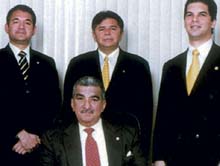 De izquierda a derecha: Julio Córdoba, Rolando Shahani, Julio Vásquez. Sentado:... |