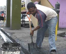 Un buhonero que vende estuches de celulares en la ví�a España, despliega cotidianamente una generosa conciencia cí�vica limpiando gratis la calle donde tiene ubicado su puesto de trabajo.