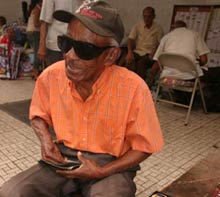 "No sé con quién estoy hablando, solamente veo un bulto que se mueve frente a mis ojos cansados", dijo el más veterano de los buhoneros capitalinos mostrando sus manos vacías, como símbolo de la pobreza que lo agobia.