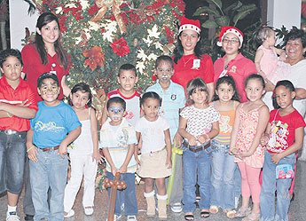 Con la participación de niños, colaboradores e invitados especiales, se realizó la tradicional encendida de luces del árbol de Navidad en el Hotel Riande Continental. En la foto niños participantes de la actividad.