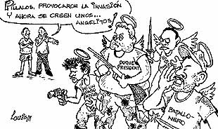 La invasión asienta en la culpa del regimen opresor, al cual sirvió